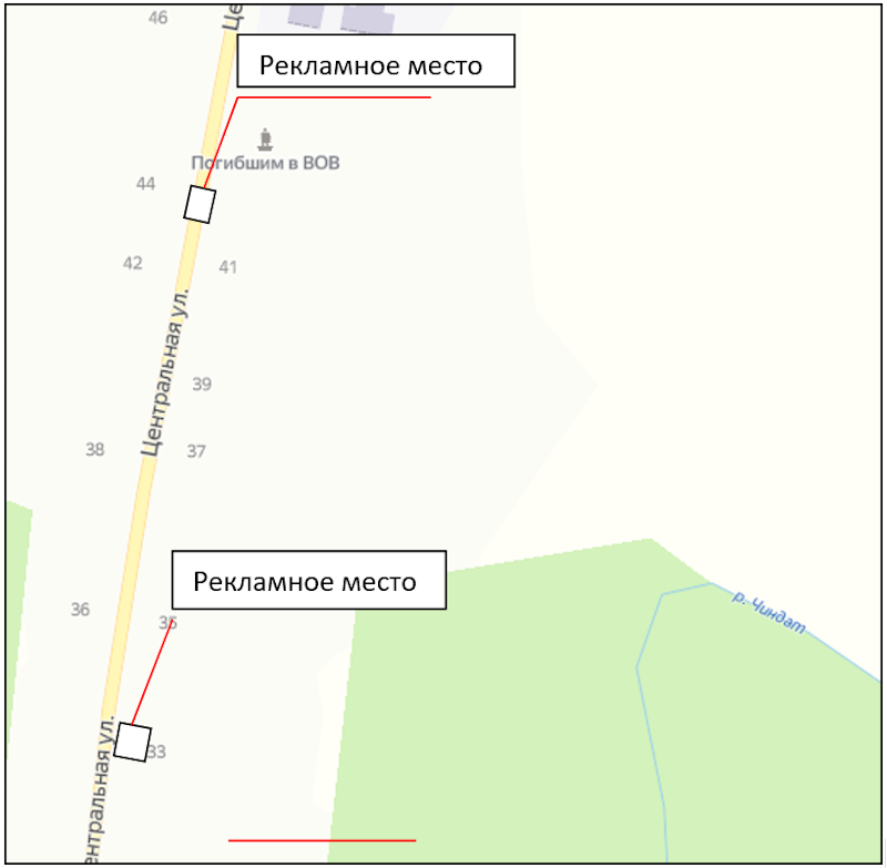 ул. Сибирская, 46 (деревянный щит), земля в муниципальной собственности администрации Тюхтетского муниципального округа |